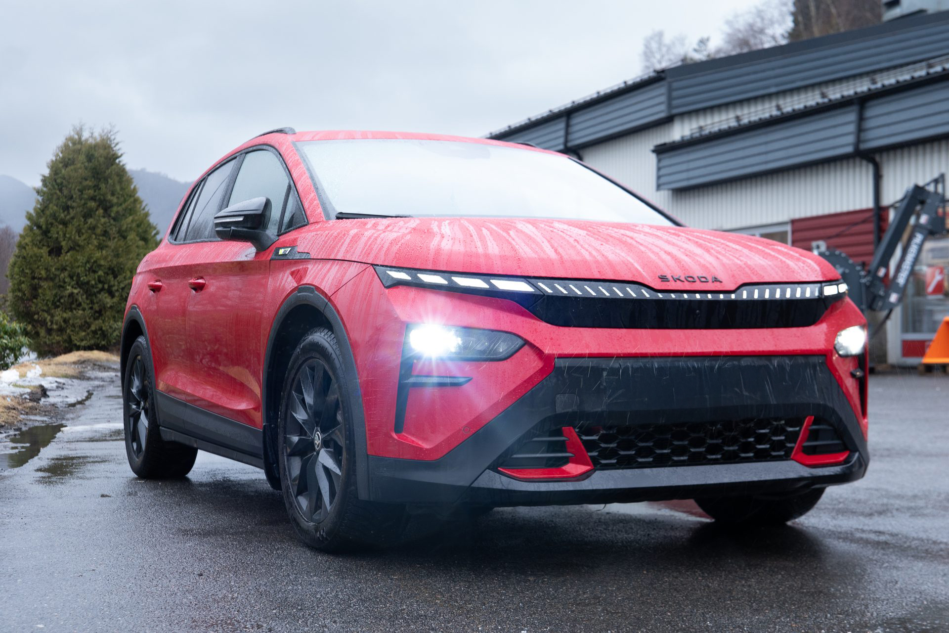 Der sto den. En Skoda Elroq. På veien møtte Jostein et kjent fjes, Jørgen Kjeseth fra Brage Finans.